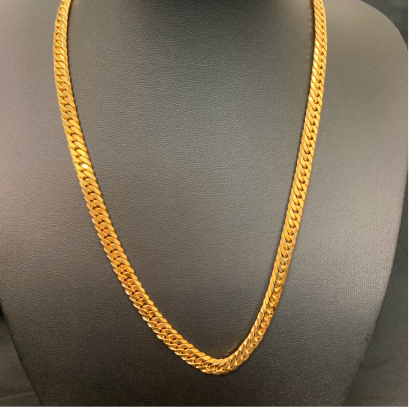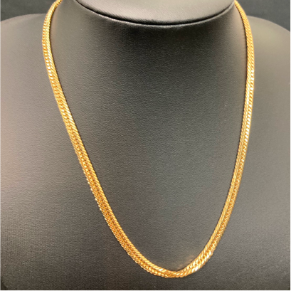 特徴は、鎖を90度にひねって平らにした「捻りカット構造」。この構造により、光を反射して美しく輝き、重量もあるため資産性が高く、純金(K24)・K18の実物資産として人気があります。