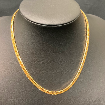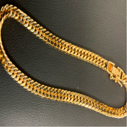 特徴は、鎖を90度にひねって平らにした「捻りカット構造」。この構造により、光を反射して美しく輝き、重量もあるため資産性が高く、純金(K24)・K18の実物資産として人気があります。